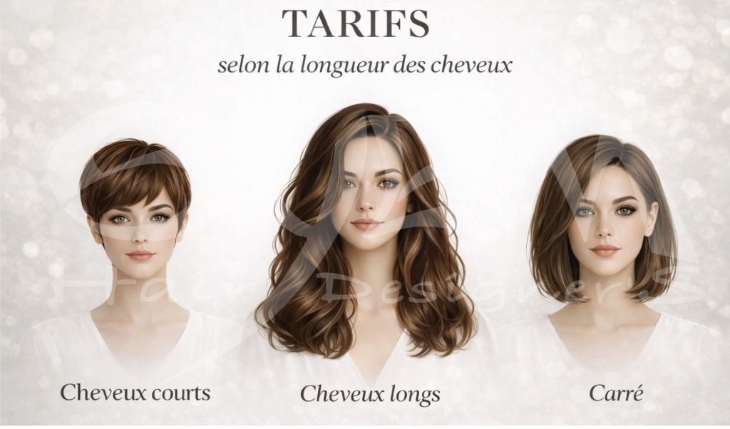 LES TARIFS PAR 3 correspondent AUX LONGUEURS DE CHEVEUX : COURTS / CARRÉS / LONGS
